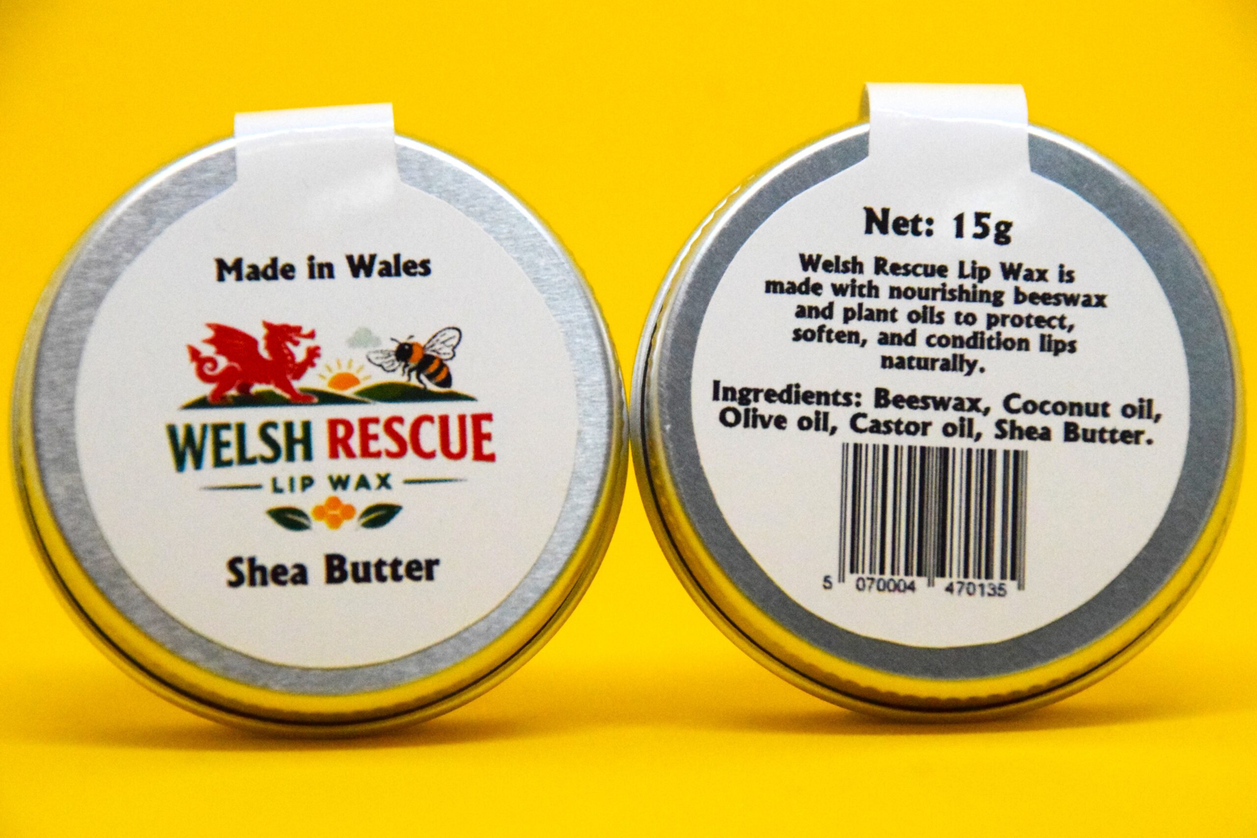 Welsh Rescue Shea Butter Lip Balm is made with nourishing beeswax, gentle botanicals, and a touch of Watermelon oil to provide lasting comfort and protection for your lips. It glides on smoothly, forming a soft, natural shield that helps lock in moisture and protect your lips from the cold Welsh wind.